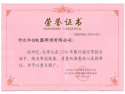 服务质量放心采购荣誉证书