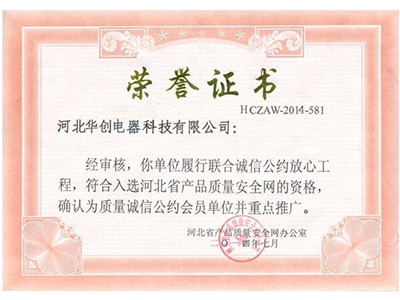质量诚信公约单位荣誉证书